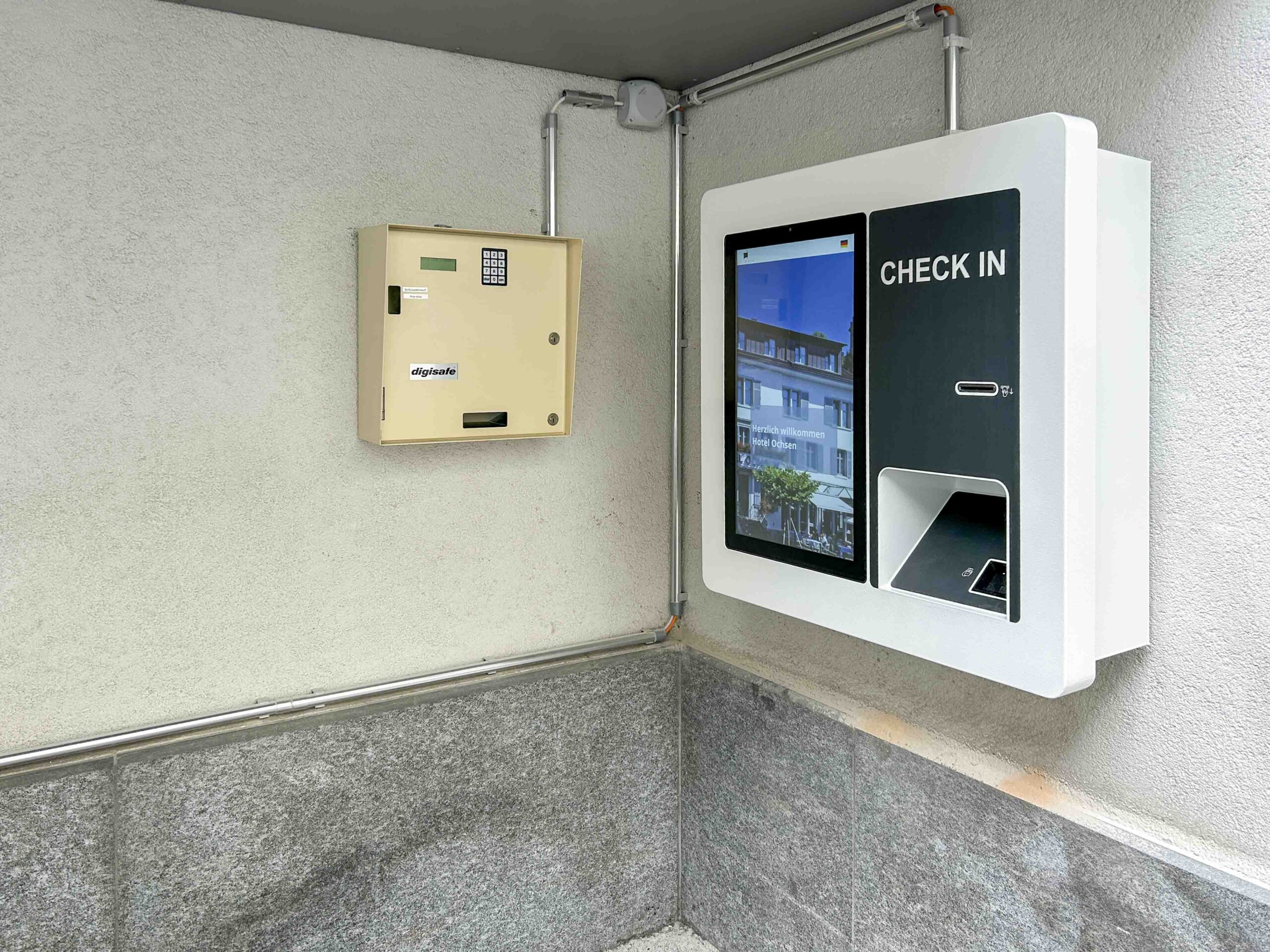 Falls Sie lieber eine physische Schlüsselkarte wünschen, erhalten Sie diese am Check-in-Automaten auf der Rückseite des Hotels.